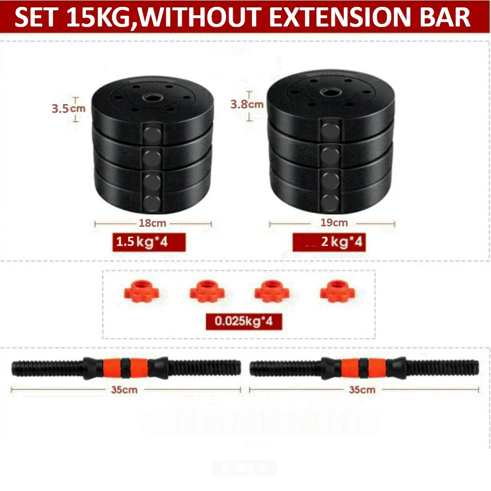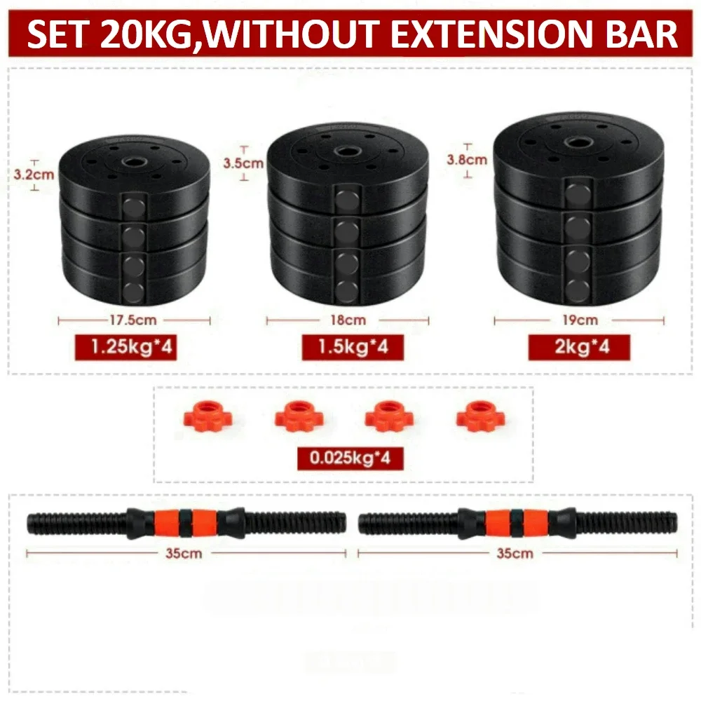 Diameter dumbbells bars: 2,5 cm.